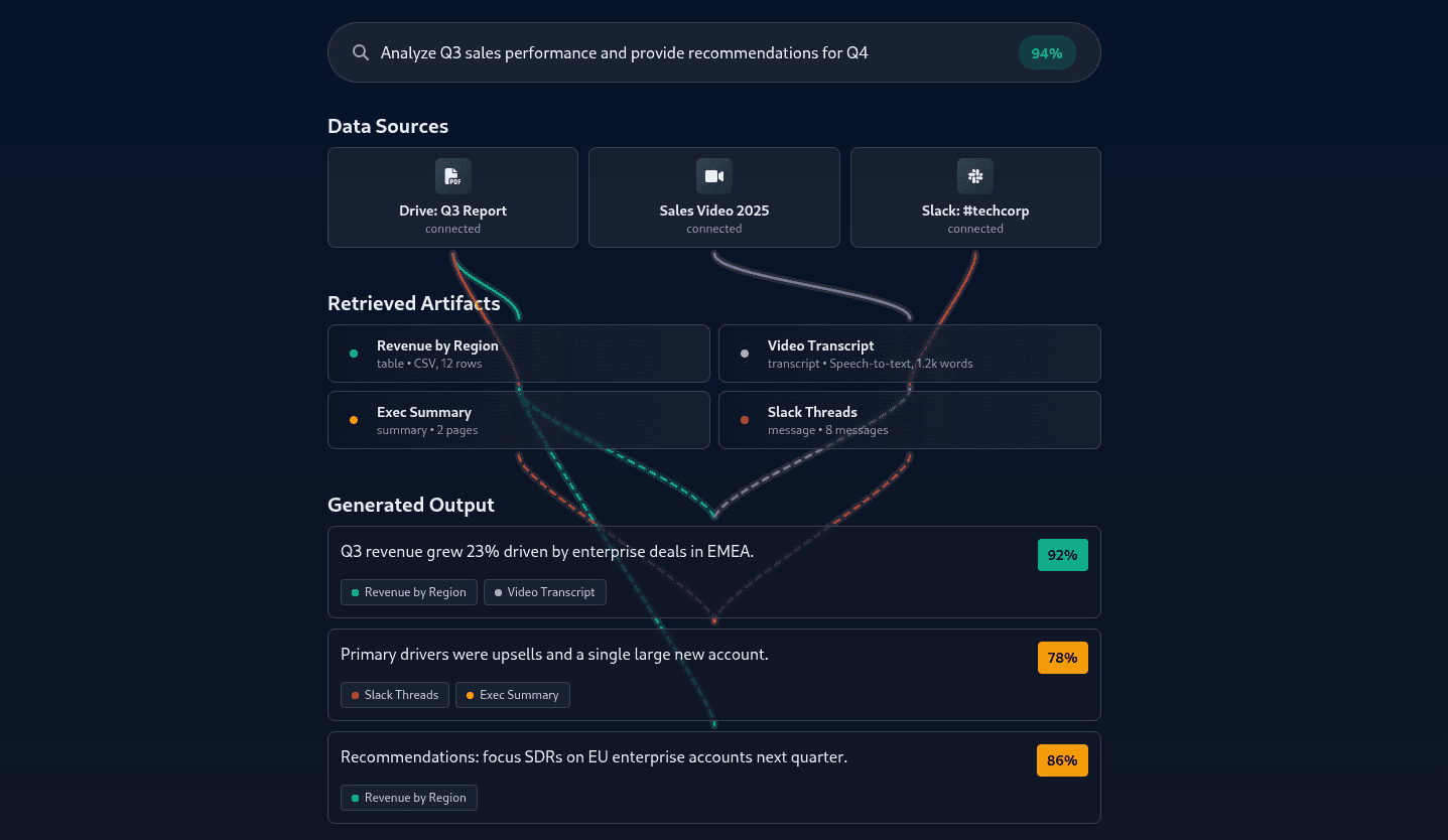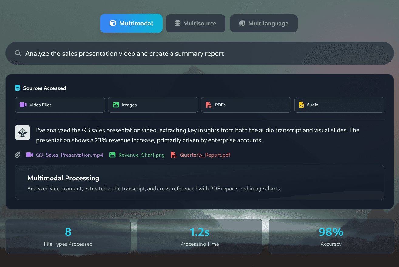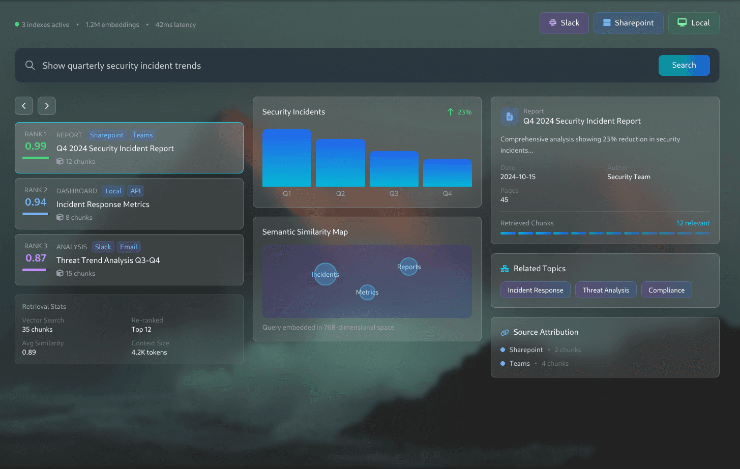Centralize your enterprise knowledge with end-to-end search and retrieval that spans every data source.